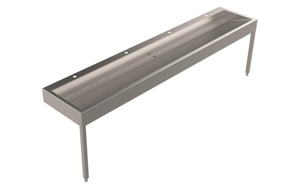 DREILICH Waschrinne 510HB WF wandhängend mit Winkelfüßen mit Armaturenbank zur Verwendung von Wandarmaturen Abmessungen: 1200 x 150 x 570mm (B x H x T) Gesamthöhe: 850mm vorgesehen zur Montage an die Wand Material: 1.4301 CNS V2A
