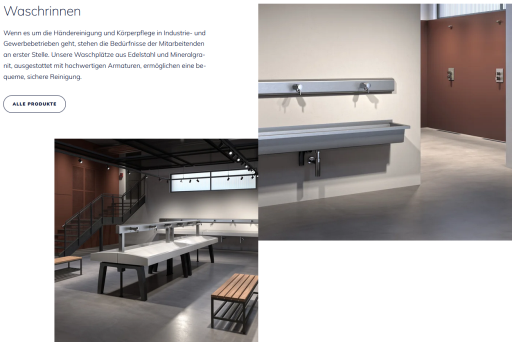 KWC PLANOX Waschrinne PL16T mit angesetzter Armaturenbank mit Siebablaufventil ohne Überlauf Material: 1.4301 CNS V2A