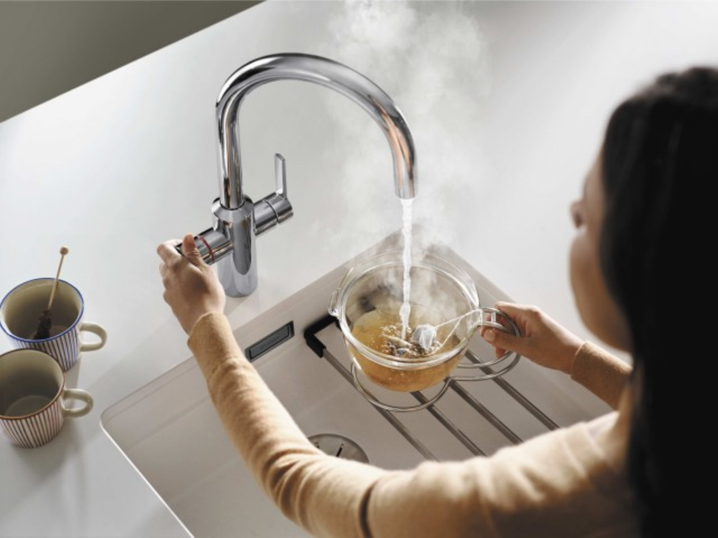 Ob frischen Tee aufgießen, Kaffee aufbrühen, Gemüse blanchieren oder die Wärmflasche füllen: Wer Wasser kocht, muss warten. Doch damit ist jetzt Schluss! Denn jetzt gibt es die smarte 3-in-1-Armatur BLANCO TAMPERA Hot. 3 in 1 heißt: kaltes, warmes und sofort kochend heißes Wasser aus einer einzigen Armatur.