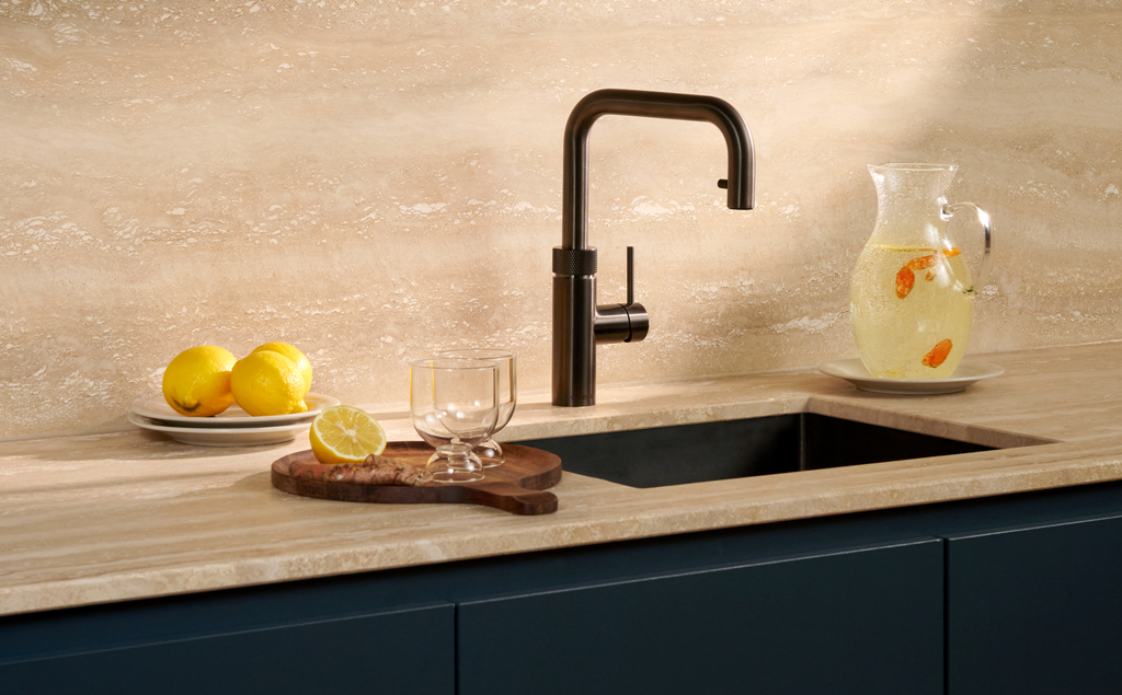 Mit dem Quooker CUBE erhalten Sie neben 100°C kochendem Wasser auch gekühltes sprudelndes und stilles Wasser aus dem Quooker-Hahn.