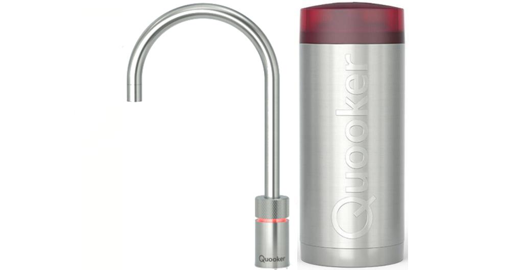 Ein Quooker-System besteht aus einem Hahn auf der Arbeitsfläche und einem Reservoir für kochendes Wasser (100°C) unter der Arbeitsfläche. Das Reservoir ist hochvakuumisoliert, sodass die Wärme nicht entweichen kann. Daher ist nur sehr wenig Energie notwendig (10 Watt), um das Wasser im Reservoir auf einer Temperatur von 108°C vorrätig zu halten. Das Reservoir wird an die Wasserleitung angeschlossen. Bei Entnahme des kochenden Wassers strömt unter der Arbeitsplatte sofort frisches Wasser in das Reservoir nach.