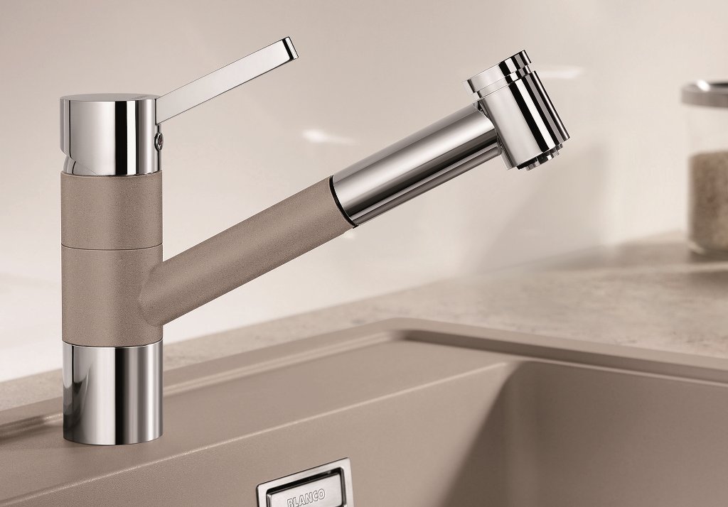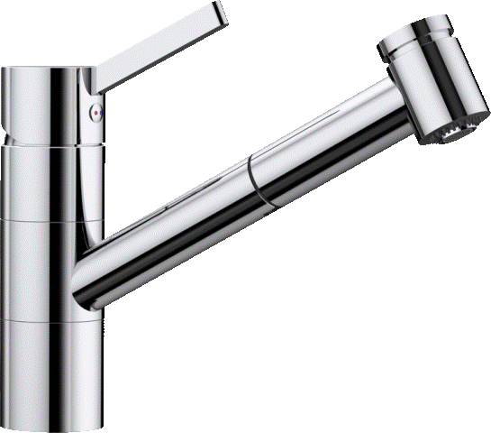 - mit dem dickeren Perlstrahl befüllen Sie z.B. einen Blumentopf, um anschließend mit dem feineren und weiter reichenden Brausestrahl das Becken von der Blumenerde zu reinigen. Und die Ausführung BLANCO TIVO-F kann senkrecht hochgehoben und zur Seite gelegt werden – ideal für den Einsatz als Vorfensterarmatur.