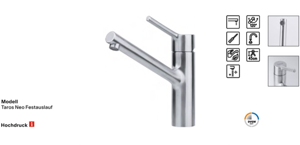 Einhebelmischer mit Festauslauf Hochdruck Küchenarmatur / Spültischarmatur ✅Lagerware! Oberfläche: Edelstahl Massiv