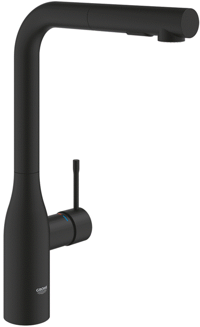 ✅ GROHE Küchenarmatur Essence Phantom Black Einhebelmischer Schwarz matt mit Zugauslauf und Brausefunktion (30504KF0)