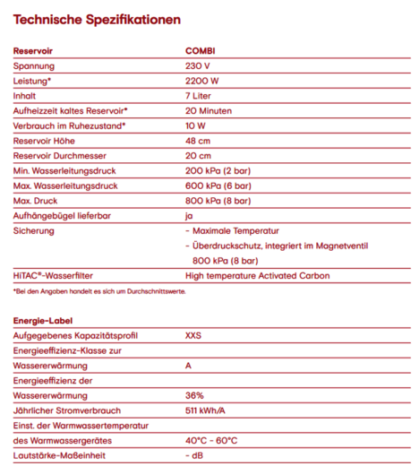 Min. Wasserleitungsdruck: 200 kPa (2 bar)