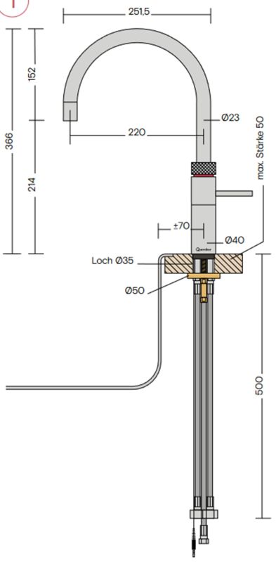 Nein, das gekühlte sprudelnde und stille Wasser kommt aus demselben Hahn wie das kochende Wasser. So sparen Sie Platz auf Ihrer Arbeitsplatte und müssen kein zusätzliches Loch bohren.