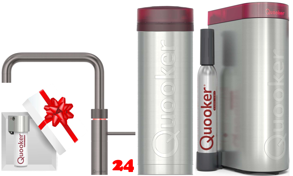 QUOOKER FUSION SQUARE PRO3 Plus Dankeschön Mischbatterie und Kochendwasser-Armatur mit Trinkwassersystem CUBE Oberfläche: Gunmetal