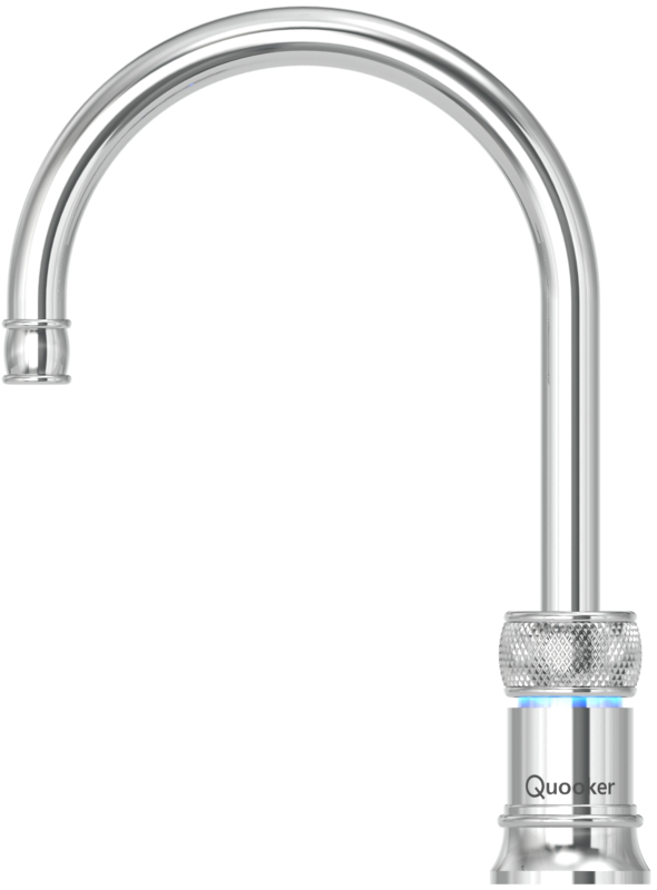 Schließlich ist nur wirklich kochendes Wasser gut genug für die perfekte Tasse Tee oder Kaffee.Fakt 01. Energie-Effizienz.Bei einem elektrischen Wasserkocher heizen Sie oft mehr Wasser auf als nötig. Und oft genug kocht das Wasser, wird vergessen und muss noch einmal zum Kochen gebracht werden, was noch mehr Zeit und Energie vergeudet. Mit dem Quooker heizen Sie exakt die Menge Wasser auf, die Sie benötigen, und dank der patentierten Hochvakuum-Isolation beträgt der Energieverbrauch lediglich 5 Cent pro Tag.Fakt 02. Sicher.Jedes Jahr verbrühen oder verbrennen sich 6000 Kinder in Deutschland so stark durch Wasserkocher, dass sie im Krankenhaus behandelt werden müssen. Die Kleinen können am Kabel ziehen und den Wasserkocher leicht umstoßen, wodurch schwere Verletzungen entstehen können (Quelle: www.kindersicherheit.de). Der Quooker dagegen hat einen Hahn, der fest mit der Arbeitsplatte verbunden ist, einen kindersicheren Druk-Dreh-Bedienknopf hat und doppelwandig ist. Da der Wasserstrahl nicht massiv ist, sondern aus Tröpfchen besteht, ist die Verletzungsgefahr sehr gering.Fakt 03. Wassersparend.Wenn Sie Wasser in einem Wasserkessel oder Wasserkocher erhitzen, kochen Sie meist viel mehr Wasser, als Sie brauchen. Mit dem Quooker dagegen zapfen Sie genau die benötigte Menge an kochendem Wasser.Fakt 04. Platzsparend.Auf der Anrichte stehen heutzutage immer mehr Geräte, obwohl es sich eigentlich um eine Arbeitsplatte handelt. Denken Sie nur an Wasserkocher, Kaffeemaschine, Küchenmaschine, Toaster, Mixer usw. Der Quooker hilft die Anrichte zu befreien, weil er einige der oben genannten Geräte überflüssig macht. Außerdem passt das kompakte Reservoir des Quookers bequem unter Ihr Spülbecken und lässt dabei noch Platz für andere notwendige Dinge.Fakt 05. Zeitsparend.In den vergangenen 15 Jahren reduzierte sich die Zeit, die man für die Zubereitung einer Mahlzeit in der Küche verbringt, von einer Stunde auf 30 Minuten. Ohne Quooker brauchen Sie 10 Minuten, um einen Topf Wasser für Nudeln zum Kochen zu bringen. Mit dem Quooker können Sie in dieser Zeit noch ein wenig Gemüse blanchieren, Eier kochen und dem Nachwuchs ein Fläschchen zubereiten.Modell: QUOOKER CLASSIC NORDIC ROUND VAQ PRO3 & CUBE 2DER WASSERHAHN, DER ALLES KANN.