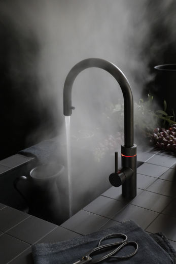 Zierlich, mysteriös, eine Spur düster. Und dennoch ein treuer Begleiter für alle. Denn ein Quooker mit schwarzer Oberfläche passt einfach zu allem. Mit Beton vermittelt er eine spartanische Ausstrahlung. Mit schwarzem Marmor, Granit und Messing dagegen wirkt er ausgesprochen elegant. Glühend kalt und kühlend warm!