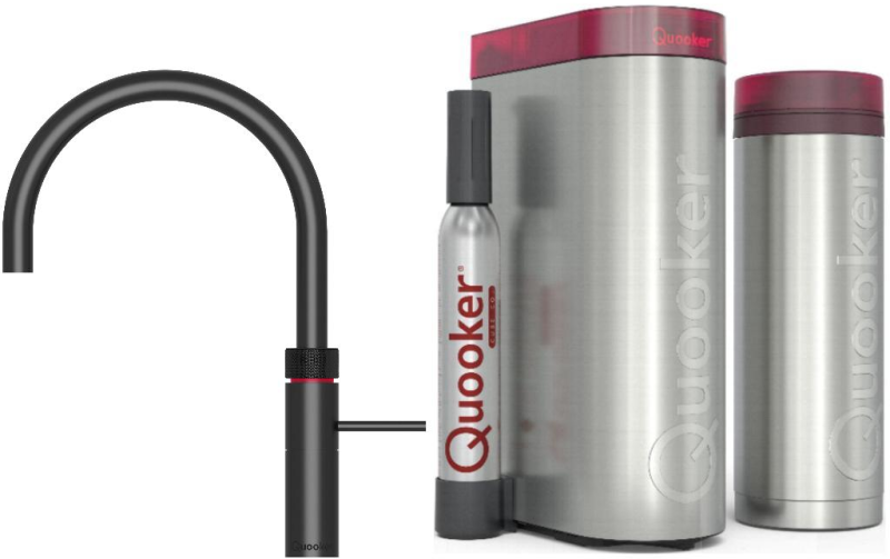 Unter dem Namen Quooker schwarz werden alle Quooker-Produkte mit schwarzer Oberfläche vertrieben. Die Serie umfasst einen schwarzen Fusion Square und Fusion Round. Sie haben also die Wahl aus einem streng geradlinigen und einem zierlich runden Auslauf. Beide schwarzen Hähne sind Mischbatterie und Kochendwasserhahn in einem, die es ermöglichen, direkt von kaltem zu kochendem Wasser und umgekehrt zu wechseln. Sie bieten alle Vorteile des bewährten Quooker: energieeffizient und sicher, und sie sparen Wasser, Platz und vor allem Zeit. Auch der passende Seifenspender ist in schwarz erhältlich. Die schwarzen Modelle Fusion Square und Fusion Round werden mit PRO3-Reservoir oder COMBI- bzw. COMBI+-Reservoir zur Montage unter der Spüle geliefert.