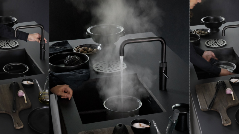 Auf dem Salone del Mobile in Mailand war zu sehen, dass dunkle Farben und wertvolle Materialien im europäischen Design vorherrschen. Mit dem Quooker in schwarz stellen wir den ersten schwarzen Kochendwasserhahn der Welt vor. Ein Schmuckstück für jede moderne Küche!