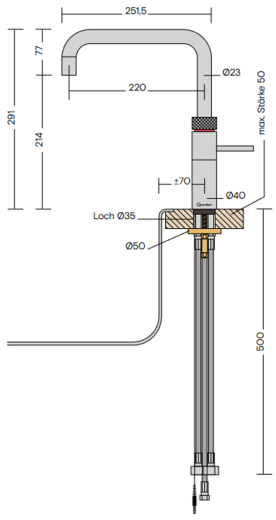 Nein, das gekühlte sprudelnde und stille Wasser kommt aus demselben Hahn wie das kochende Wasser. So sparen Sie Platz auf Ihrer Arbeitsplatte und müssen kein zusätzliches Loch bohren.