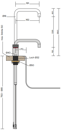 Technische Besonderheiten Modell: QUOOKER NORDIC Doppelwandiger Auslauf, dessen Außenseite so kühl bleibt
