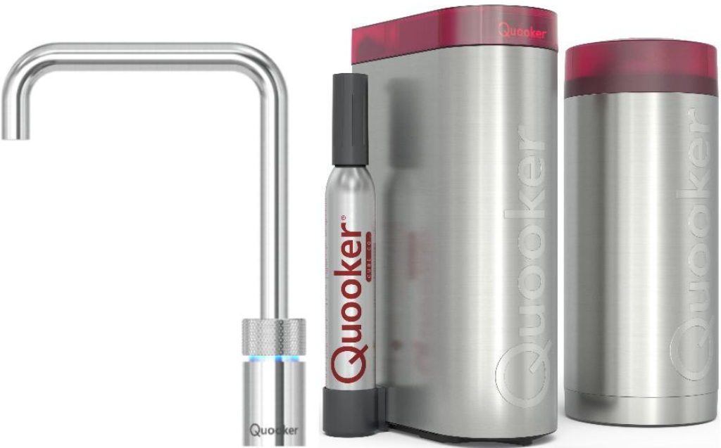 Schließlich ist nur wirklich kochendes Wasser gut genug für die perfekte Tasse Tee oder Kaffee.Fakt 01. Energie-Effizienz.Bei einem elektrischen Wasserkocher heizen Sie oft mehr Wasser auf als nötig. Und oft genug kocht das Wasser, wird vergessen und muss noch einmal zum Kochen gebracht werden, was noch mehr Zeit und Energie vergeudet. Mit dem Quooker heizen Sie exakt die Menge Wasser auf, die Sie benötigen, und dank der patentierten Hochvakuum-Isolation beträgt der Energieverbrauch lediglich 5 Cent pro Tag.Fakt 02. Sicher.Jedes Jahr verbrühen oder verbrennen sich 6000 Kinder in Deutschland so stark durch Wasserkocher, dass sie im Krankenhaus behandelt werden müssen. Die Kleinen können am Kabel ziehen und den Wasserkocher leicht umstoßen, wodurch schwere Verletzungen entstehen können (Quelle: www.kindersicherheit.de). Der Quooker dagegen hat einen Hahn, der fest mit der Arbeitsplatte verbunden ist, einen kindersicheren Druk-Dreh-Bedienknopf hat und doppelwandig ist. Da der Wasserstrahl nicht massiv ist, sondern aus Tröpfchen besteht, ist die Verletzungsgefahr sehr gering.Fakt 03. Wassersparend.Wenn Sie Wasser in einem Wasserkessel oder Wasserkocher erhitzen, kochen Sie meist viel mehr Wasser, als Sie brauchen. Mit dem Quooker dagegen zapfen Sie genau die benötigte Menge an kochendem Wasser.Fakt 04. Platzsparend.Auf der Anrichte stehen heutzutage immer mehr Geräte, obwohl es sich eigentlich um eine Arbeitsplatte handelt. Denken Sie nur an Wasserkocher, Kaffeemaschine, Küchenmaschine, Toaster, Mixer usw. Der Quooker hilft die Anrichte zu befreien, weil er einige der oben genannten Geräte überflüssig macht. Außerdem passt das kompakte Reservoir des Quookers bequem unter Ihr Spülbecken und lässt dabei noch Platz für andere notwendige Dinge.Fakt 05. Zeitsparend.In den vergangenen 15 Jahren reduzierte sich die Zeit, die man für die Zubereitung einer Mahlzeit in der Küche verbringt, von einer Stunde auf 30 Minuten. Ohne Quooker brauchen Sie 10 Minuten, um einen Topf Wasser für Nudeln zum Kochen zu bringen. Mit dem Quooker können Sie in dieser Zeit noch ein wenig Gemüse blanchieren, Eier kochen und dem Nachwuchs ein Fläschchen zubereiten.Modell: QUOOKER NORDIC SQUARE COMBI (+) B & CUBE 2DER WASSERHAHN, DER ALLES KANN.