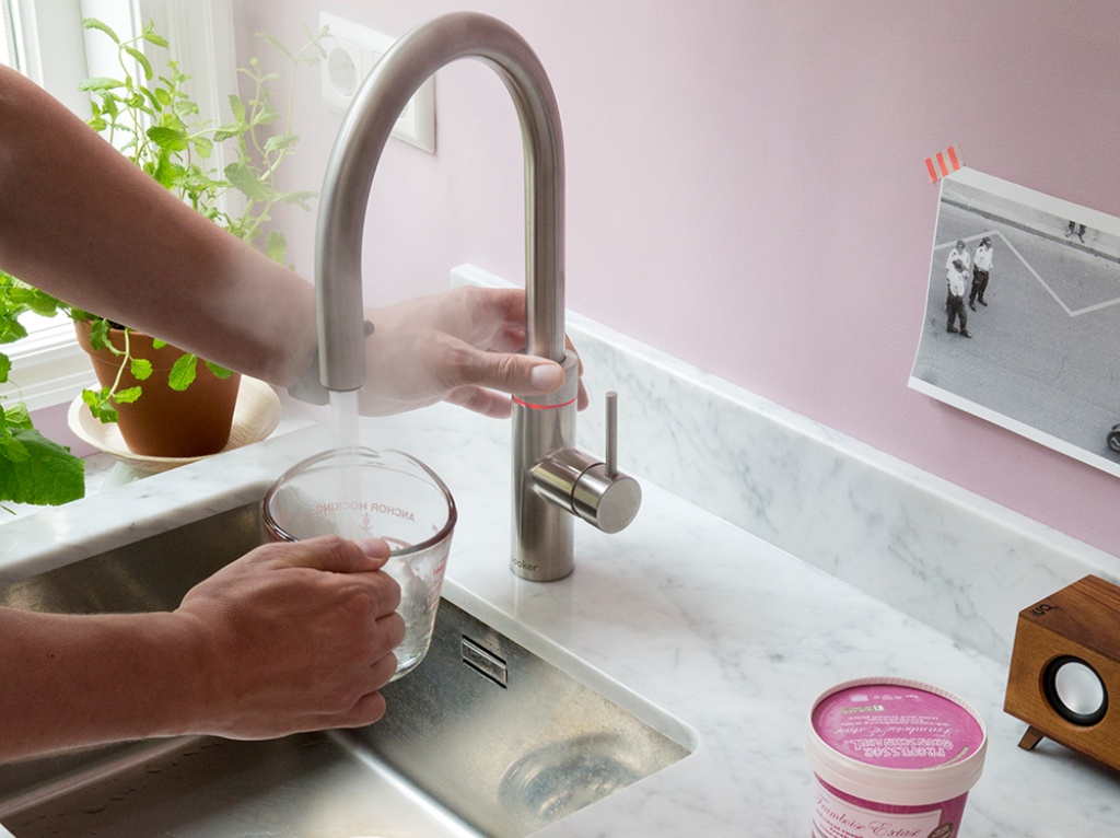 Mit dem Quooker CUBE erhalten Sie neben 100°C kochendem Wasser auch gekühltes sprudelndes und stilles Wasser aus dem Quooker-Hahn.