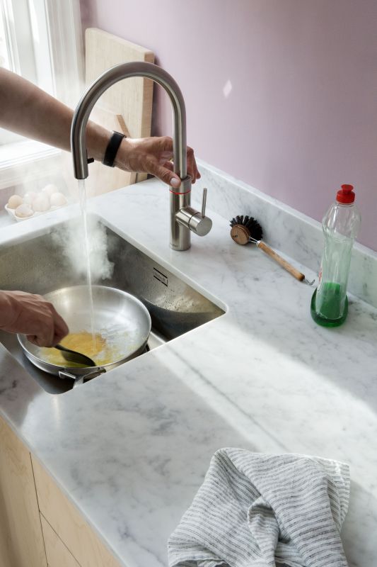 Quooker-Benutzer kommen immer wieder auf neue Ideen. Die Zubereitung einer Tasse Tee liegt auf der Hand und als jüngster Neuzugang findet sich das Pochieren von Fisch auf der Liste. Natürlich kann man auch einen Topf mit Nudelwasser füllen, Gemüse blanchieren, Teller und Servierplatten erhitzen, Kaffee kochen, Babynahrung vorbereiten, Tomaten häuten, Kerzenwachs entfernen und noch vieles mehr. Alles im Handumdrehen und mit 100° C kochendem Wasser erledigt!