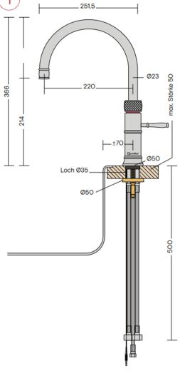 QUOOKER Zulaufverlängerung PRO3 B nur kaltwasserseitig (EHCW70)