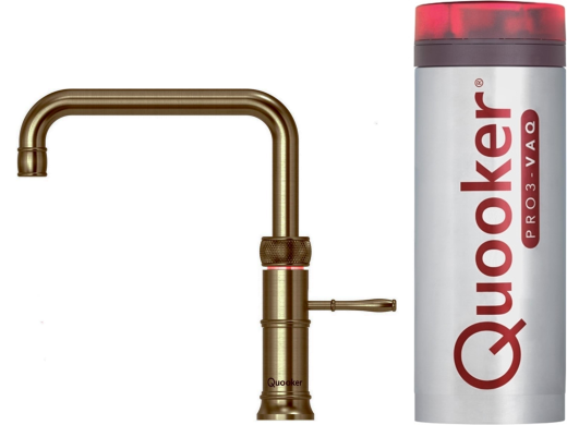 QUOOKER CLASSIC FUSION SQUARE VAQ PRO3 inklusive Dankeschön Mischbatterie und Kochendwasser-Armatur Oberfläche: Messing Patina