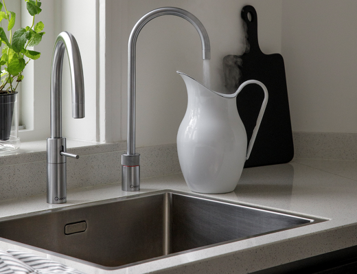 Schließlich ist nur wirklich kochendes Wasser gut genug für die perfekte Tasse Tee oder Kaffee.Fakt 01. Energie-Effizienz.Bei einem elektrischen Wasserkocher heizen Sie oft mehr Wasser auf als nötig. Und oft genug kocht das Wasser, wird vergessen und muss noch einmal zum Kochen gebracht werden, was noch mehr Zeit und Energie vergeudet. Mit dem Quooker heizen Sie exakt die Menge Wasser auf, die Sie benötigen, und dank der patentierten Hochvakuum-Isolation beträgt der Energieverbrauch lediglich 5 Cent pro Tag.Fakt 02. Sicher.Jedes Jahr verbrühen oder verbrennen sich 6000 Kinder in Deutschland so stark durch Wasserkocher, dass sie im Krankenhaus behandelt werden müssen. Die Kleinen können am Kabel ziehen und den Wasserkocher leicht umstoßen, wodurch schwere Verletzungen entstehen können (Quelle: www.kindersicherheit.de). Der Quooker dagegen hat einen Hahn, der fest mit der Arbeitsplatte verbunden ist, einen kindersicheren Druk-Dreh-Bedienknopf hat und doppelwandig ist. Da der Wasserstrahl nicht massiv ist, sondern aus Tröpfchen besteht, ist die Verletzungsgefahr sehr gering.Fakt 03. Wassersparend.Wenn Sie Wasser in einem Wasserkessel oder Wasserkocher erhitzen, kochen Sie meist viel mehr Wasser, als Sie brauchen. Mit dem Quooker dagegen zapfen Sie genau die benötigte Menge an kochendem Wasser.Fakt 04. Platzsparend.Auf der Anrichte stehen heutzutage immer mehr Geräte, obwohl es sich eigentlich um eine Arbeitsplatte handelt. Denken Sie nur an Wasserkocher, Kaffeemaschine, Küchenmaschine, Toaster, Mixer usw. Der Quooker hilft die Anrichte zu befreien, weil er einige der oben genannten Geräte überflüssig macht. Außerdem passt das kompakte Reservoir des Quookers bequem unter Ihr Spülbecken und lässt dabei noch Platz für andere notwendige Dinge.Fakt 05. Zeitsparend.In den vergangenen 15 Jahren reduzierte sich die Zeit, die man für die Zubereitung einer Mahlzeit in der Küche verbringt, von einer Stunde auf 30 Minuten. Ohne Quooker brauchen Sie 10 Minuten, um einen Topf Wasser für Nudeln zum Kochen zu bringen. Mit dem Quooker können Sie in dieser Zeit noch ein wenig Gemüse blanchieren, Eier kochen und dem Nachwuchs ein Fläschchen zubereiten.