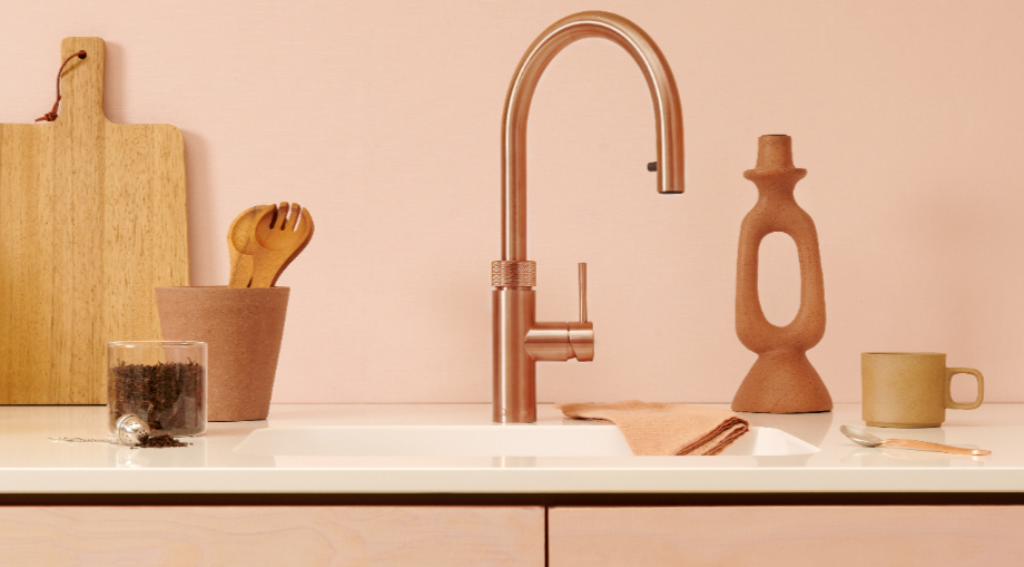 QUOOKER FLEX VAQ PRO3 Einhebelmischer Zugauslauf Kupfer Rose' PVD & 100°C Armatur Kochendwasserhahn (PRO3FXRRCO)