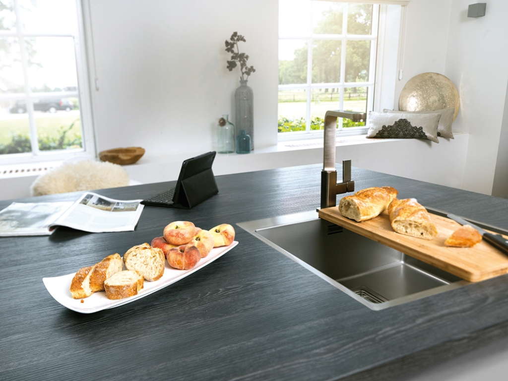 zur Montage in die Arbeitsplatte oder Spüle bequeme Druckbetätigung Oberfläche: Gun Metal