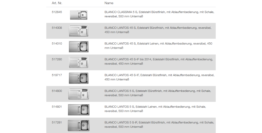 Edelstahlspüle / Einbauspüle reversibel Oberfläche: Bürstfinish Außenmaße: 780x500mm