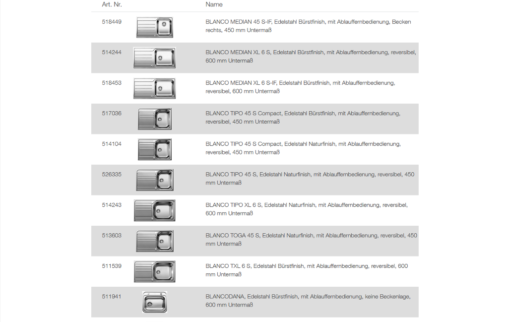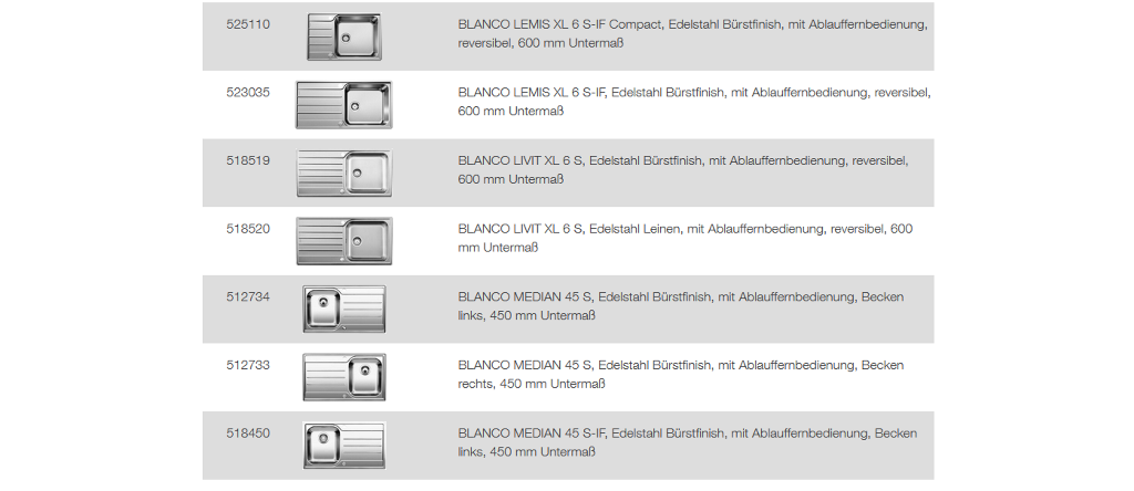 Edelstahlspüle / Einbauspüle reversibel Oberfläche: Bürstfinish Außenmaße: 1000x500mm