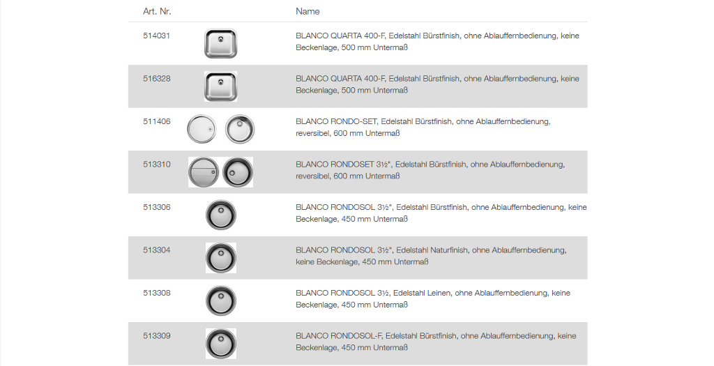Rundbecken-Edelstahlspüle Oberfläche: Bürstfinish Außendurchmesser: 448mm
