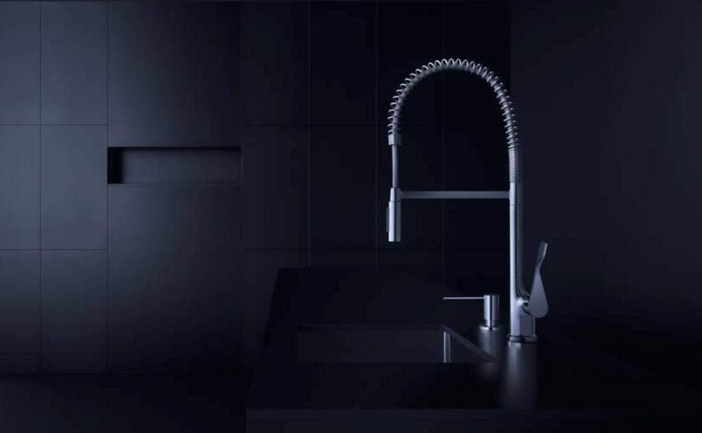 zur Montage in die Arbeitsplatte oder Spüle bequeme Druckbetätigung Oberfläche: Brushed Black Chrome