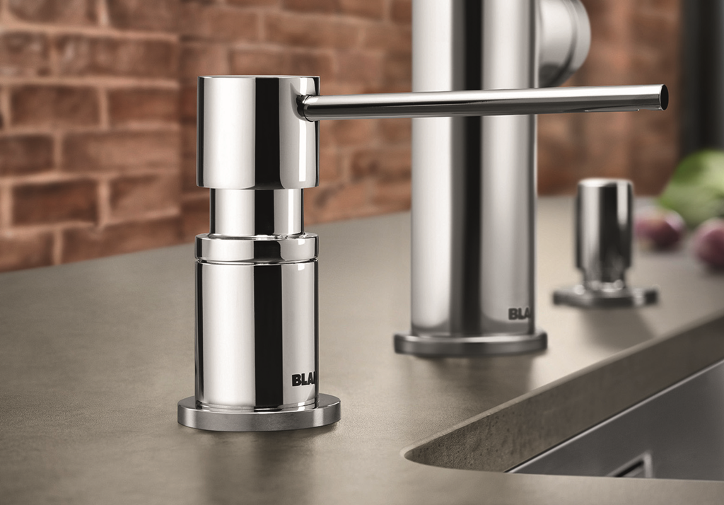zur Montage in die Arbeitsplatte oder Spüle bequeme Druckbetätigung nachfüllbar von Oben
