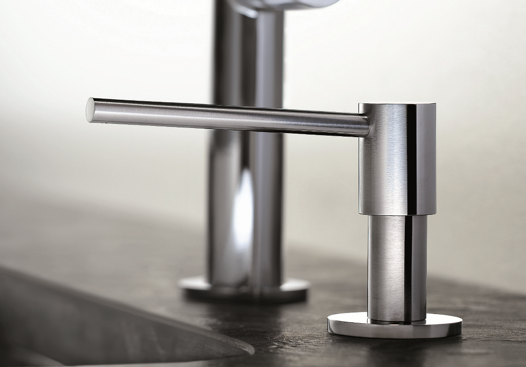 zur Montage in die Arbeitsplatte oder Spüle bequeme Druckbetätigung nachfüllbar von Oben
