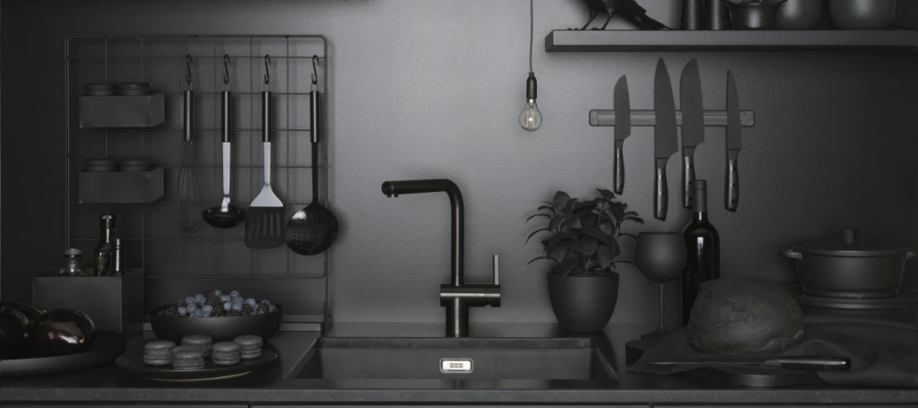 Einhebel-Küchenarmatur mit Festauslauf Hochdruck Umwelttechnologie CoolStart und EcoSelection Schwenkbereich einstellbar in 3 Stufen auf 60°, 110° oder 360° Normalstrahl Oberfläche: Chrom