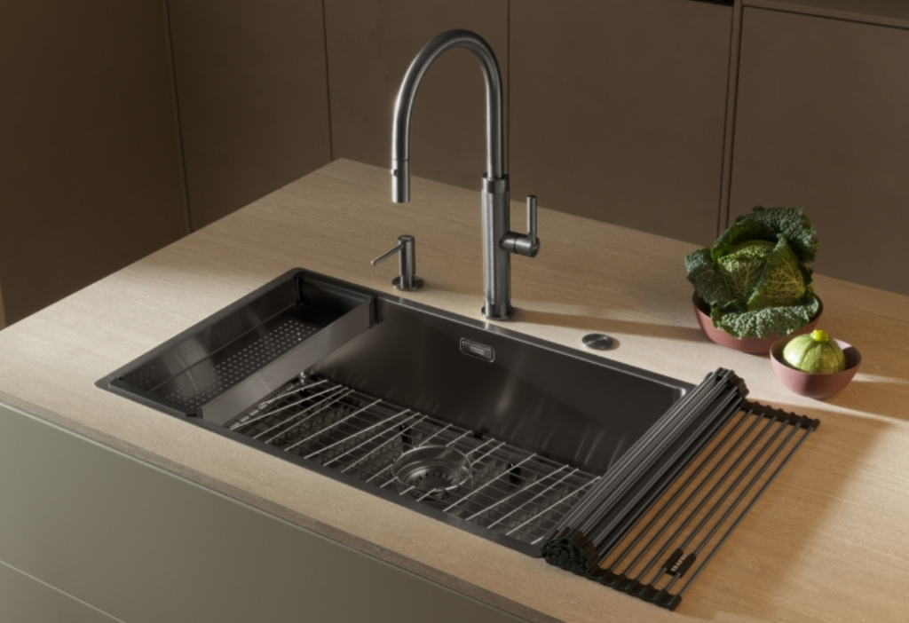 zur Montage in die Arbeitsplatte oder Spüle bequeme Druckbetätigung nachfüllbar von Oben Material: Edelstahl massiv Oberfläche: Anthracite