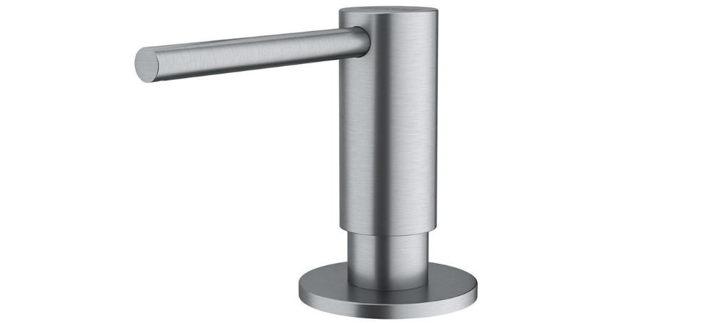 zur Montage in die Arbeitsplatte oder Spüle bequeme Druckbetätigung nachfüllbar von Oben Material: Edelstahl massiv Oberfläche: Edelstahl gebürstet