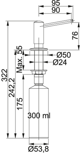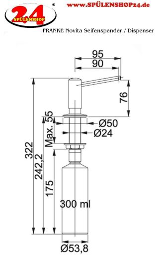 zur Montage in die Arbeitsplatte oder Spüle bequeme Druckbetätigung nachfüllbar von Oben
