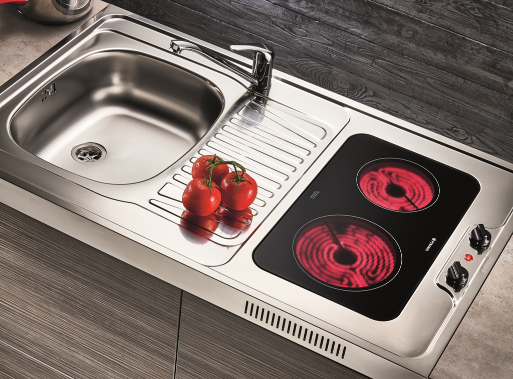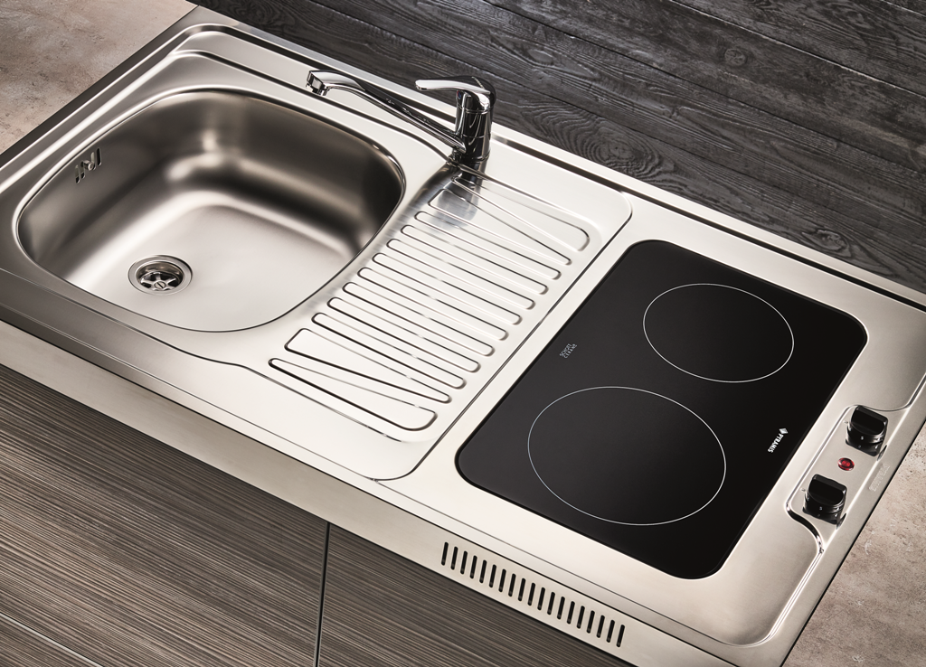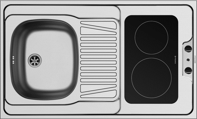 Edelstahlspüle / Auflagespüle Pantryabdeckung mit Ceran Kochfeld Außenmaße: 1000x600mm
