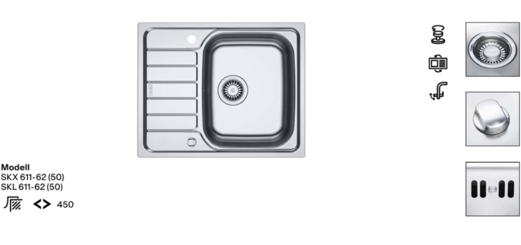 Edelstahlspüle mit Drehexcenter reversibel Oberfläche: Edelstahl Leinenstruktur Außenmaße: 620x500mm