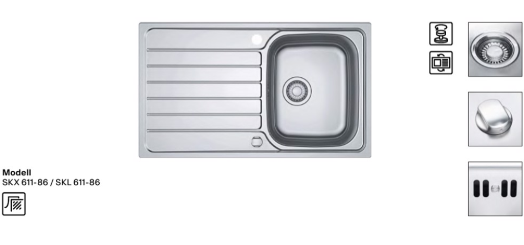 Edelstahlspüle mit Drehexcenter reversibel Oberfläche: Edelstahl Leinenstruktur Außenmaße: 860x500mm