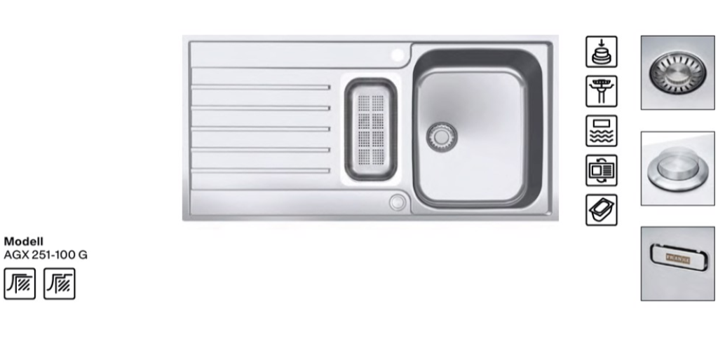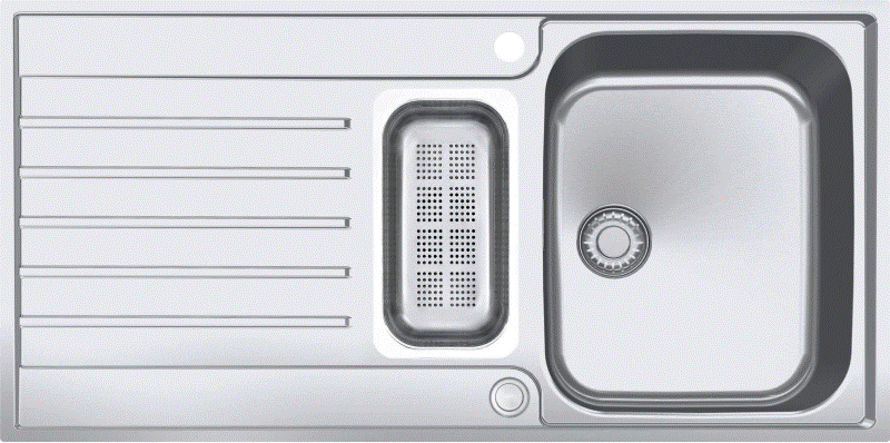 Edelstahlspüle mit Druckknopfventil reversibel Oberfläche: Edelstahl poliert Außenmaße: 1000x510mm