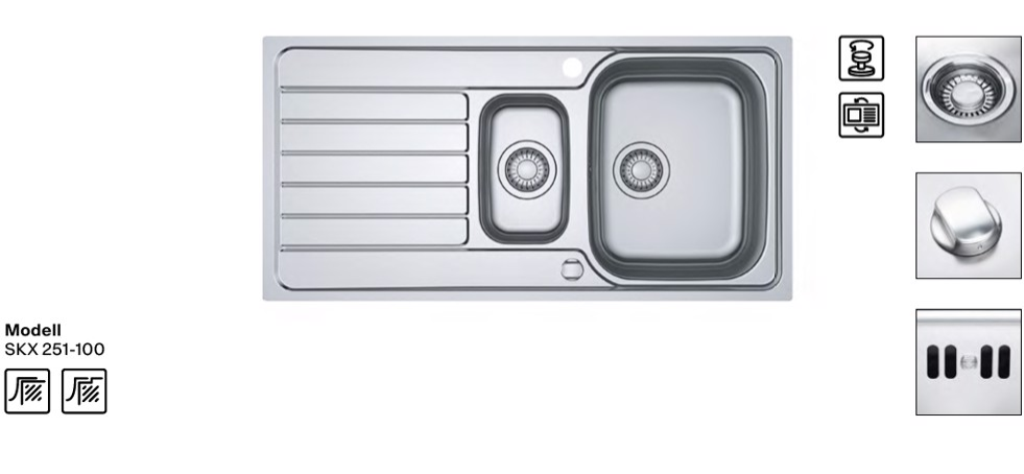 Edelstahlspüle mit Drehexcenter reversibel Oberfläche: Edelstahl poliert Außenmaße: 1000x500mm