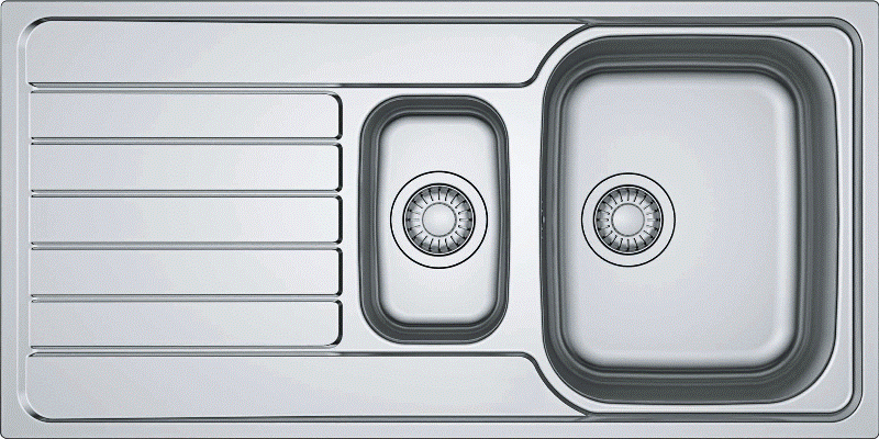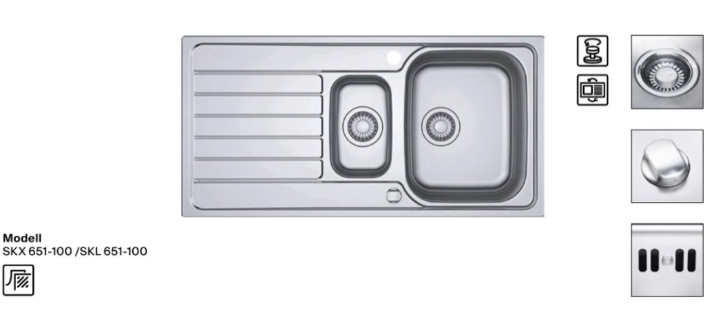 Edelstahlspüle mit Drehexcenter reversibel Oberfläche: Edelstahl poliert Außenmaße: 1000x500mm