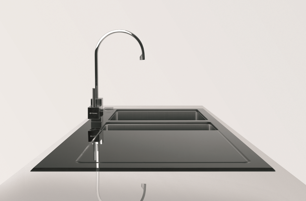 Keramik-Unterbauspüle mit Handbetätigung Material: Villeroy & Boch CeramicPlus Außenmaße: 440x440mm