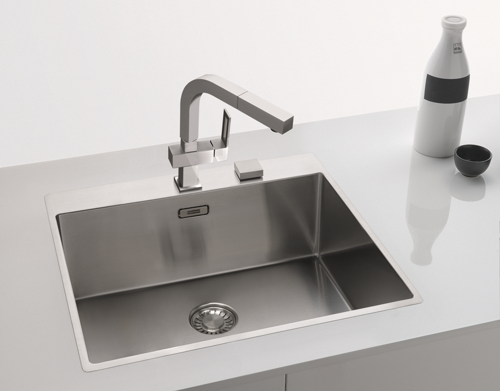 Edelstahlspüle mit Druckknopfventil Oberfläche: Edelstahl sanft gebürstet Außenmaße: 570x510mm
