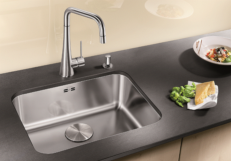 Edelstahlspüle / Einbauspüle Designspüle aus der Serie: STEELART Außenmaße: 440x440mm