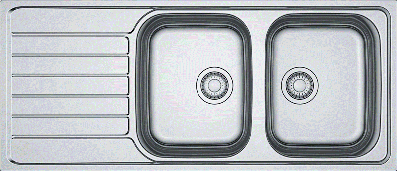 Edelstahlspüle mit Drehexcenter reversibel Oberfläche: Edelstahl poliert Außenmaße: 1160x500mm