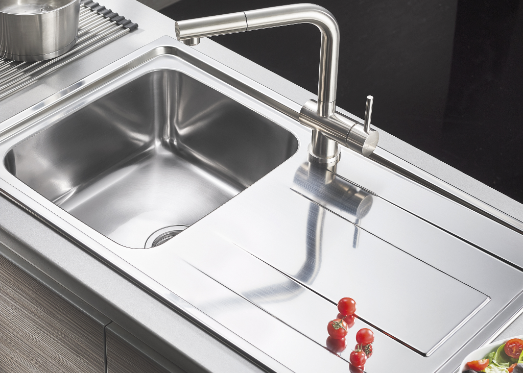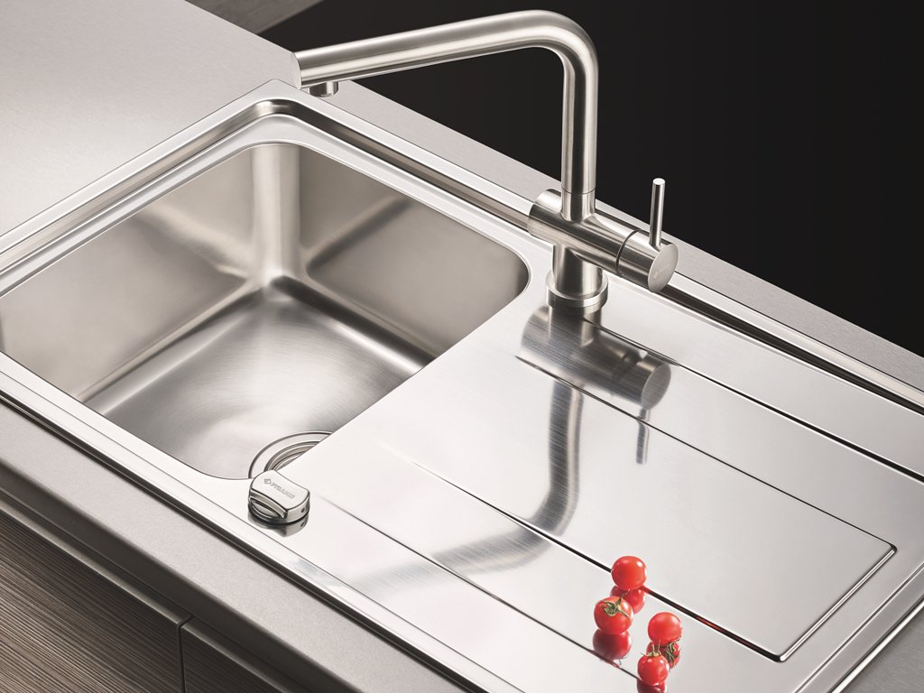 Edelstahlspüle mit Drehexcenter reversibel Oberfläche: Edelstahl poliert Außenmaße 1160x500mm
