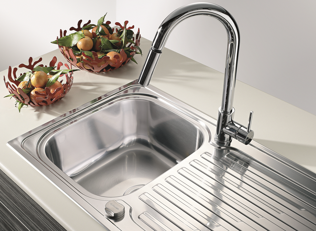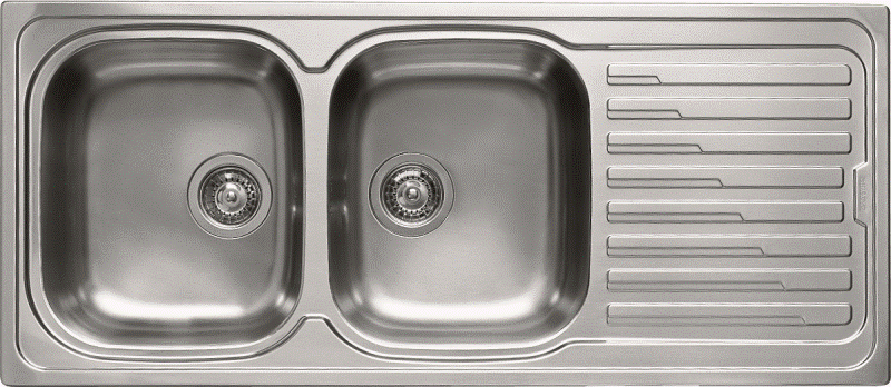 Edelstahlspüle mit Drehexcenter reversibel Oberfläche: Edelstahl poliert Außenmaße: 1160x500mm