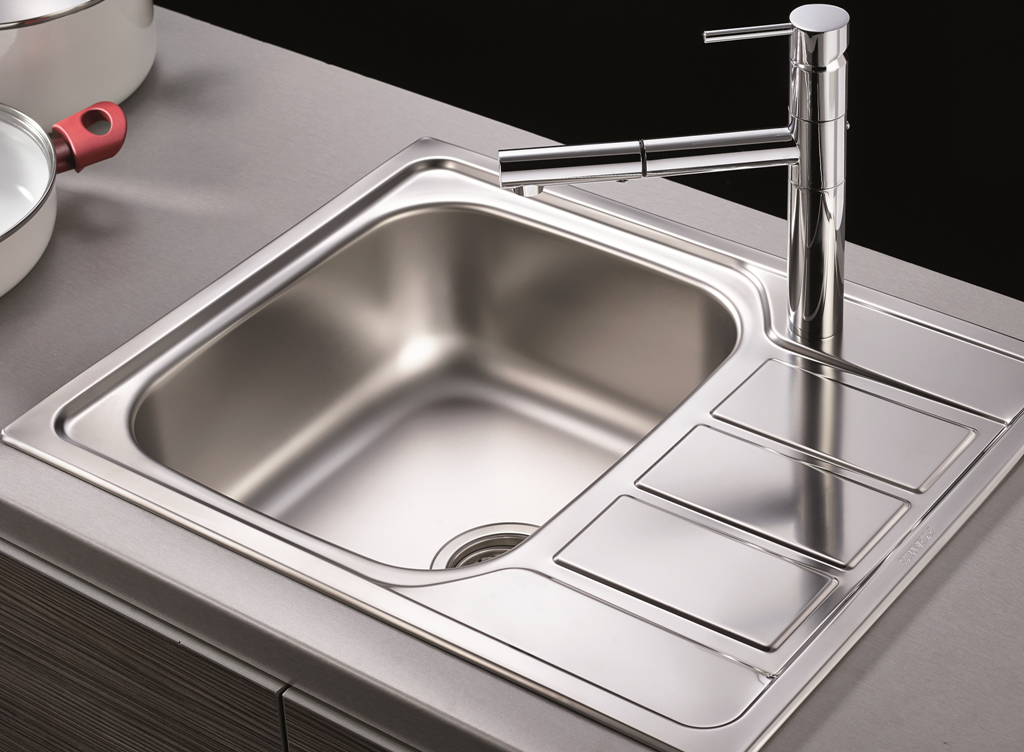 Edelstahlspüle mit Drehexcenter reversibel Oberfläche: Edelstahl poliert Außenmaße 1160x500mm