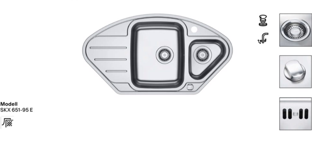 Edelstahlspüle mit Drehexcenter Oberfläche: Edelstahl poliert Außenmaße: 945x510mm
