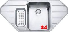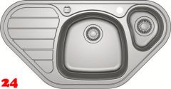 Edelstahl / Einbau-Eckspüle mit Drehexcenter Oberfläche: Edelstahl poliert Außenmaße: 950x500mm